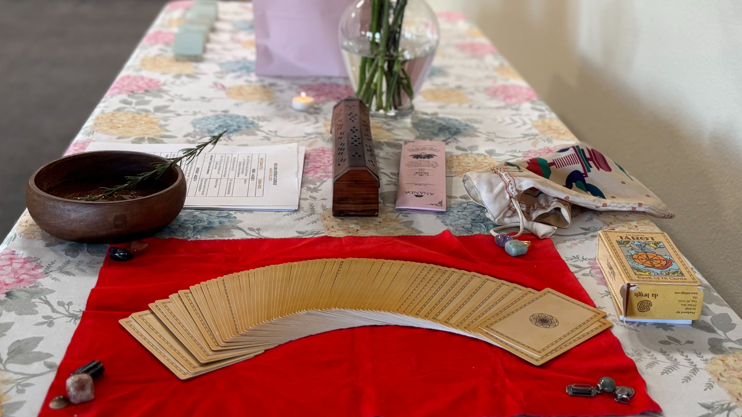 Ritual & Sisterhood:Â Guided practices, Tarot cards, reflection time, and honest connection with like-hearted women and the energy of the Divine Feminine.